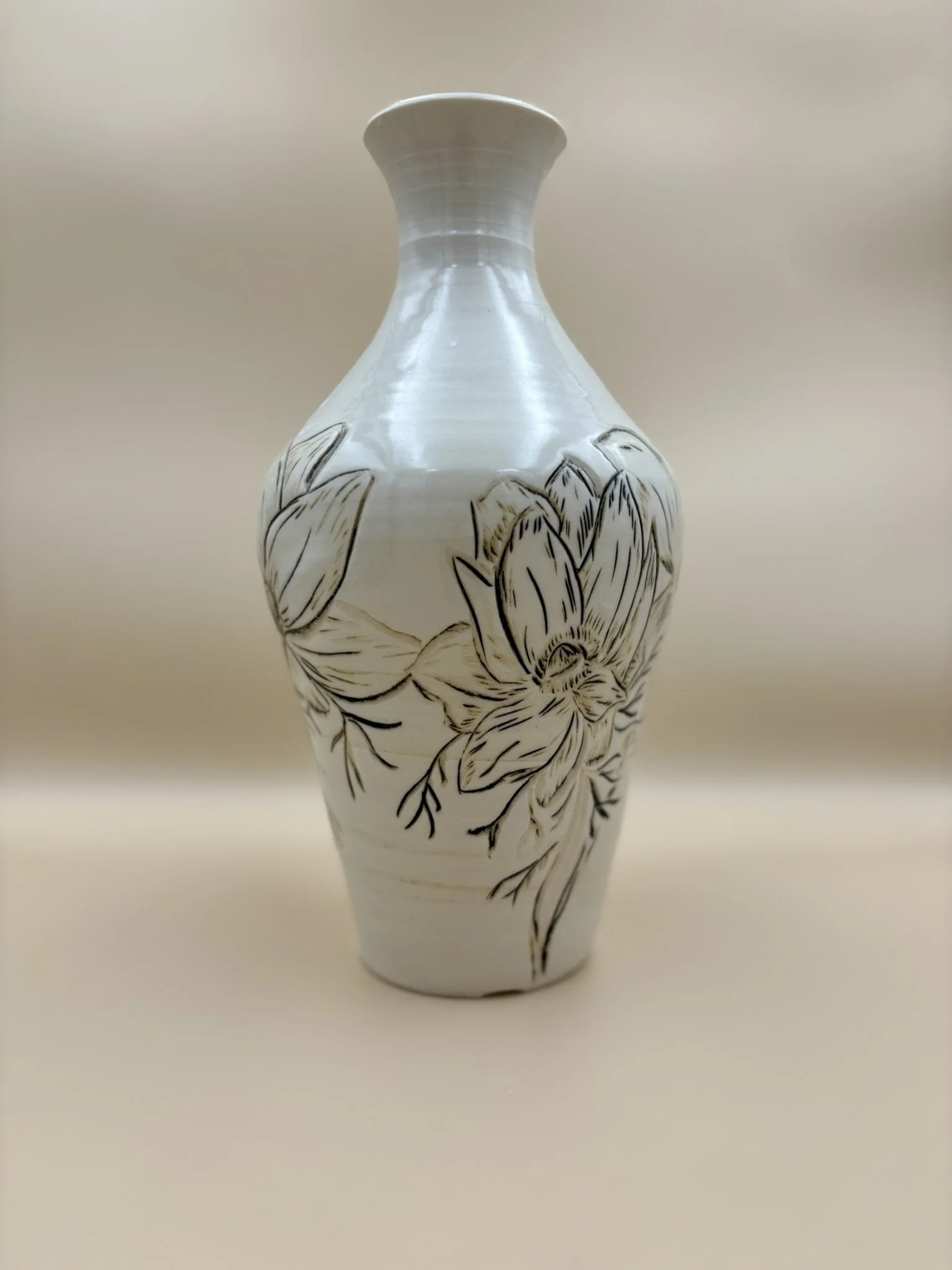 Porcelain freehand drawn wheel thrown pottery