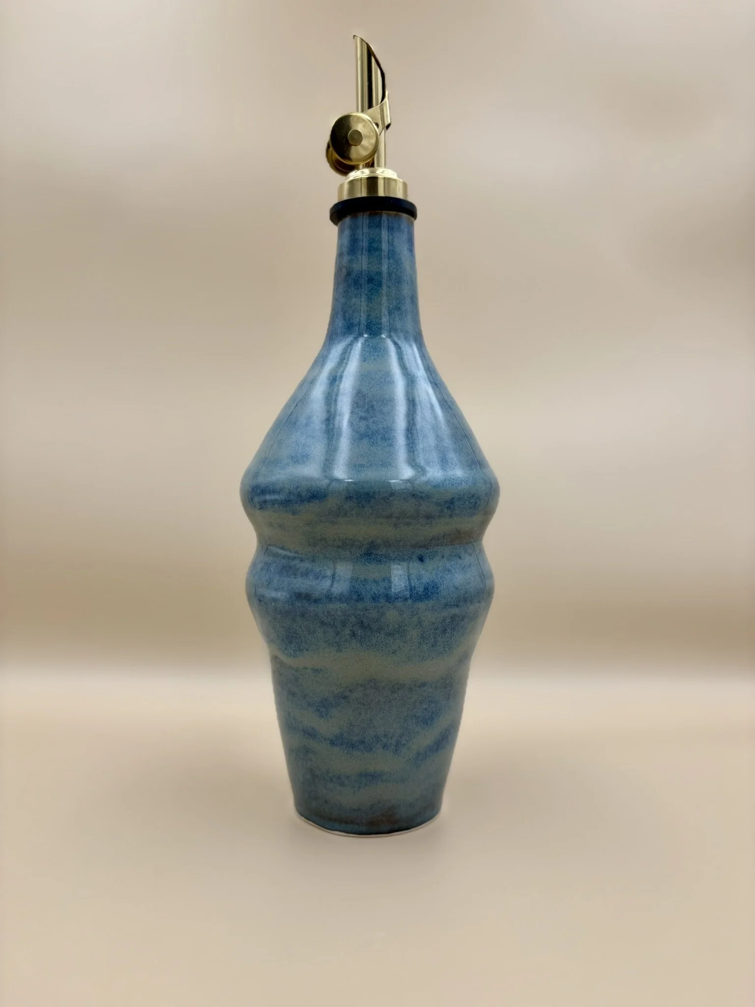 wheel thrown handmade porcelain olive oil bottle pourer blue