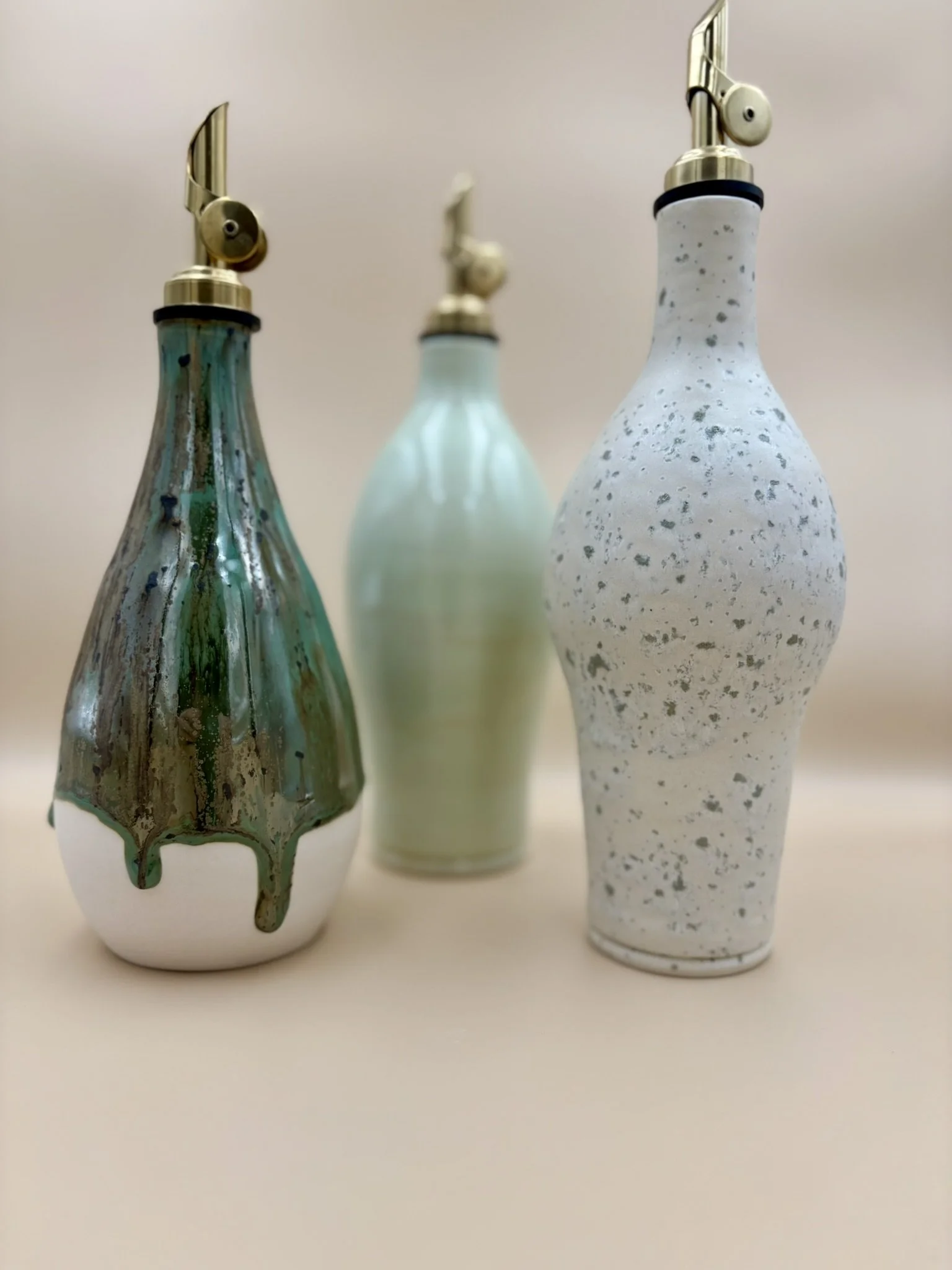 wheel thrown handmade porcelain olive oil bottle pourer