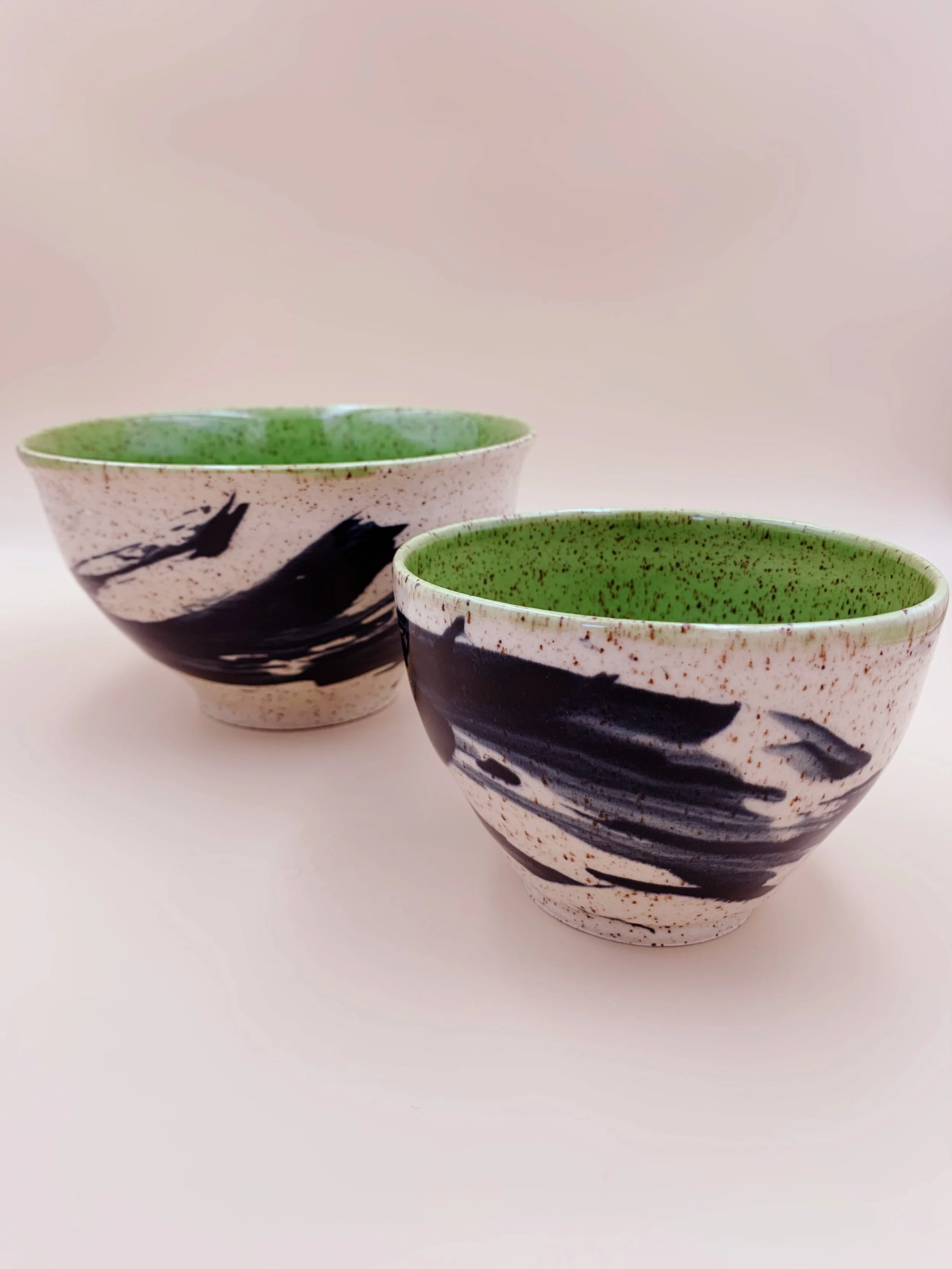 Stoneware ceramic speckled clay brush style black green bowl