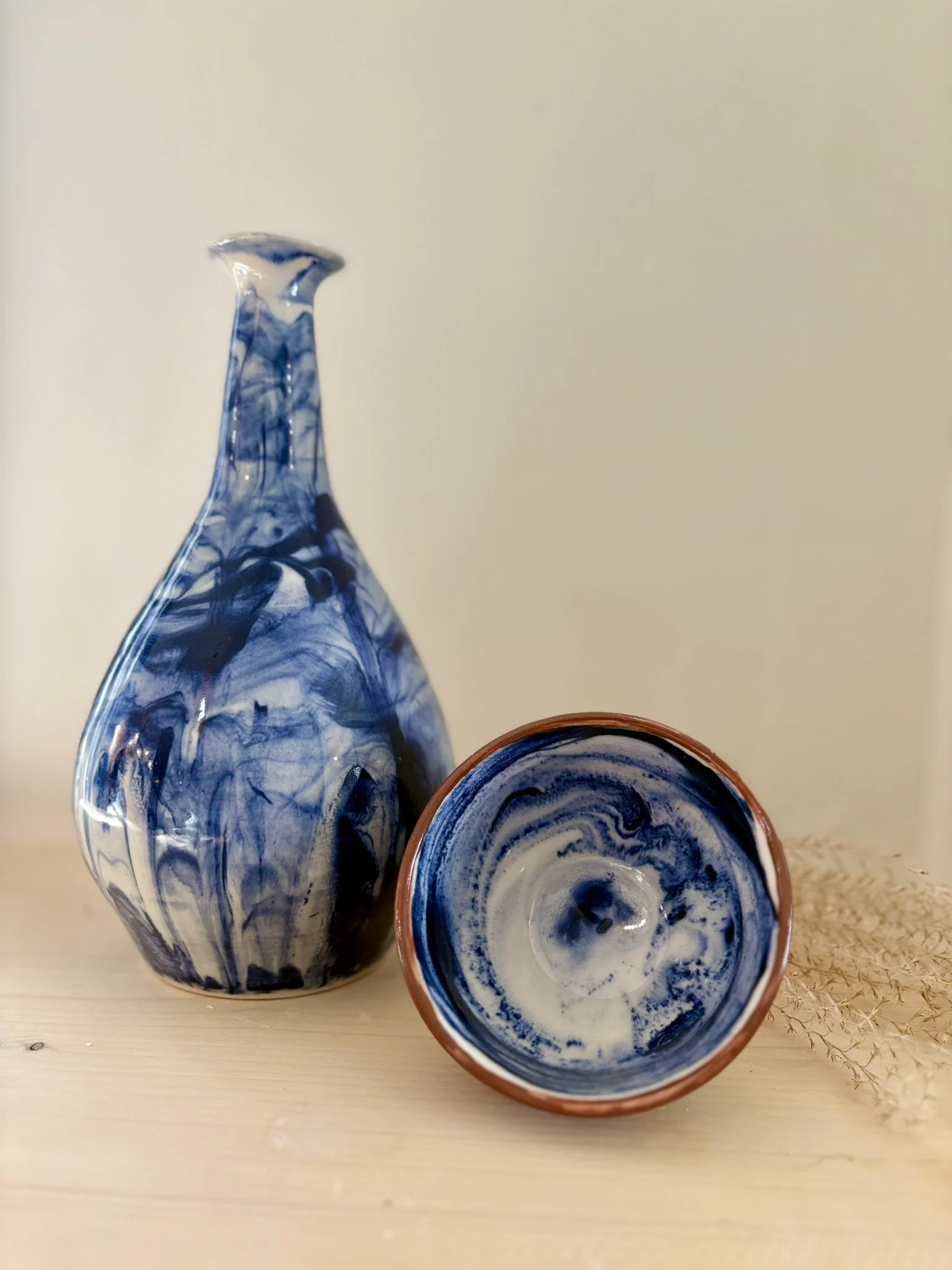 porcelain blue marble handmade pottery wheel thrown